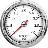 | ✚✚✚ Speedhut 2-5/8" Boost Gauge 0-4bar Metric Classic looks with the latest in electronics. An internal microprocessor controls the needle movement through a digital stepper motor. The high torque of the stepper motor ensures accurate pointer movement without vibration in all race conditions. A high accuracy electronic (.5-4.5v) pressure transducer is included with the gauge for highest accuracy. A super thin (easy for gauge pods) composite carbon case design allows easy mounting in tight locations. Bright annodized solid Aluminum bezel! A unique Spin lock ring is included for ease of installation and a total custom look.