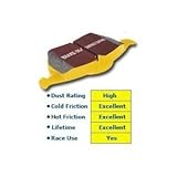 The new EBC Yellowstuff compound is essentially a race pad but with a big difference in that it works from cold and can be safely used on the highway. If you want the ultimate in high friction braking this is the pad to choose. Brakes feel superb from first touch of the pedal and stay effective up to race temperatures. Maximum stopping is prime requirement and for short duration track use. Its dust rating is similar to OEM parts. All pads come with edge chamfers, center line slots, noise reduction shims and OEM hardware as needed. All EBC pads feature the EBC brake in surface coating which helps pads seat quickly after install.